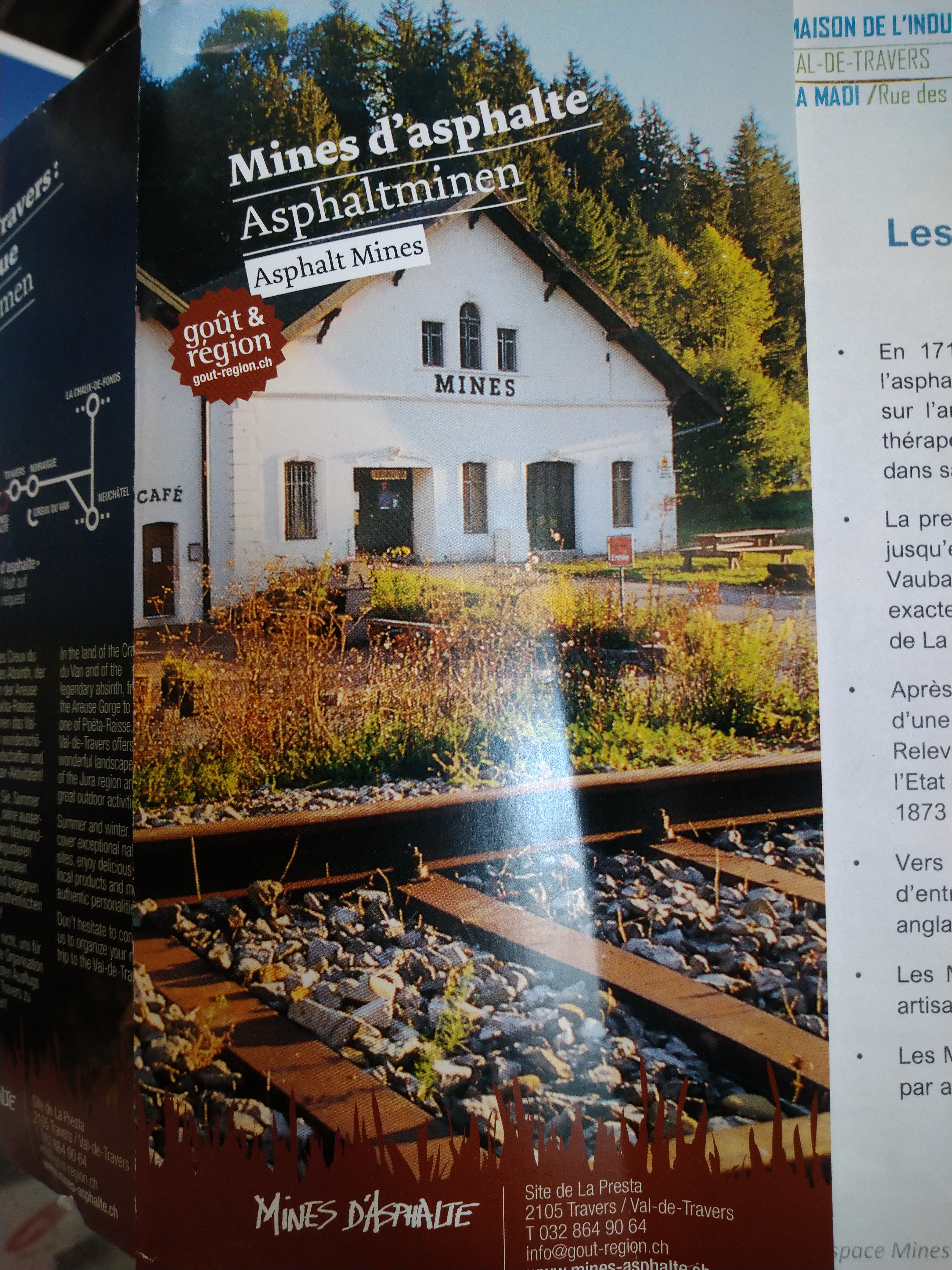 « En 1711, le premier savant moderne spécialisé dans le domaine de l’asphalte, le médecin Grec Eirini Eyrinys, identifie les premiers gisements sur l’anticlinal nord du Val-de-Travers. Intéressé d’abord par les effets thérapeutiques de ce matériaux, il jette les bases de ses usages modernes dans sa « dissertation sur l’asphalte ou ciment naturel ».
